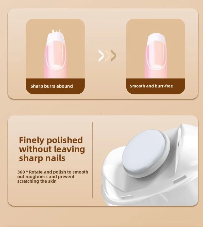 360 ° rotary polishing, no jerking sensation, fits baby's nail shape with rounded nails.